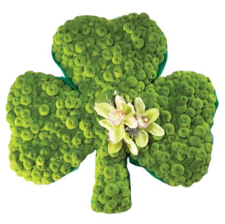 Flowers Box London presents a delightful green shamrock. Based green santini chrysanthemum shamrock tribute with green cymbidium. This beautiful flower compassion for funeral is suitable for condolences to the family or as a funeral homage.